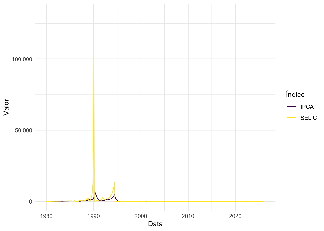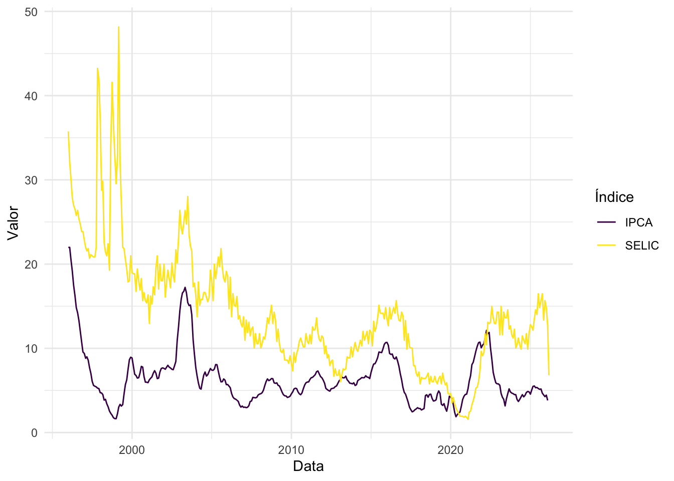 labs(x = "Data", y = "Valor", colour = "Índice") +